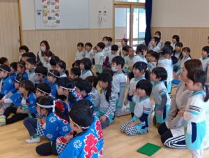最後に、ひまわり組さんの着ていた法被を着て