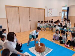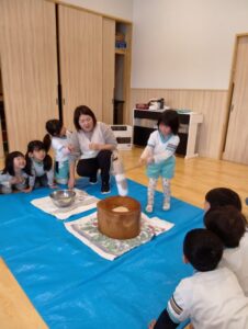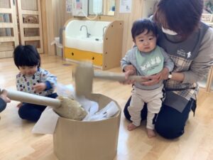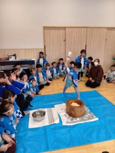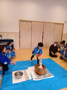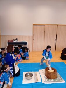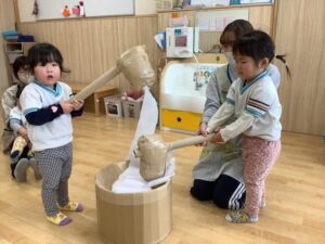 ひよこ、すみれ組さんも『おもちつき』したよ!