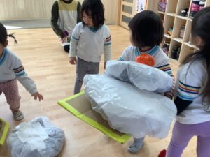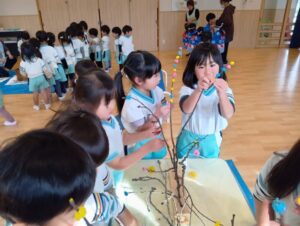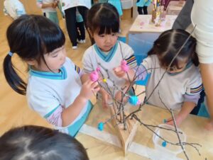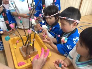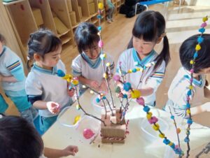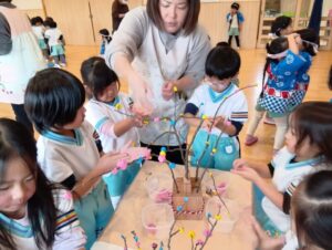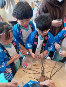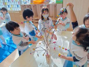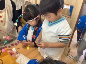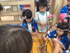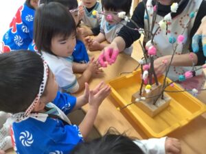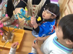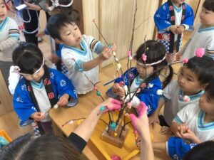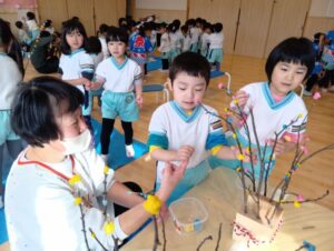 すみれ組さんも、餅花作りをしたよ!