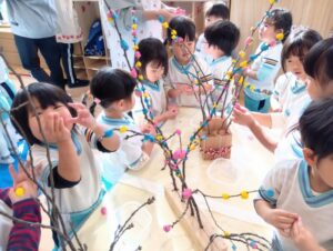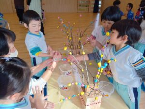たんぽぽ組さんも餅花飾りをしました。