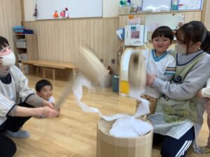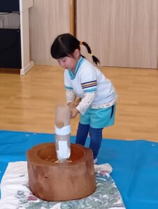 ゆり組さんも、おもちつき!!