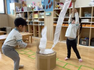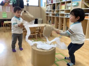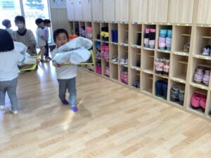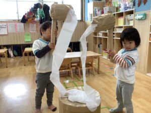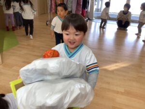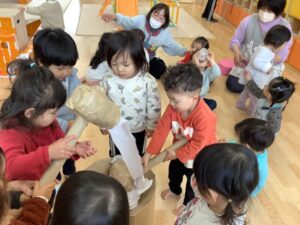 今日は、おもちつき行事を、たっぷりと遊んで楽しかったね!
