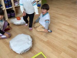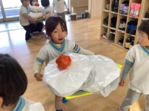 鏡もち運び競争で遊びました!!