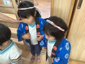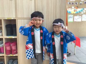 今日は法被を着て、お祭り行事ですね😄