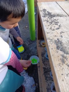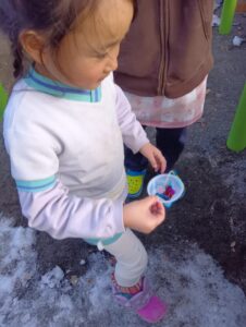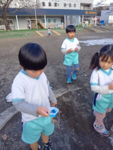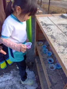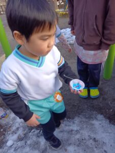 実は、ひまわり組さんのお部屋の2階のテラスの所で氷を作ってみましたが、