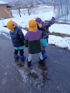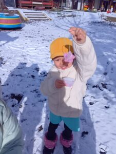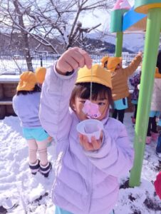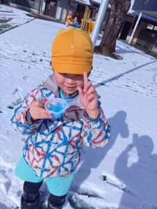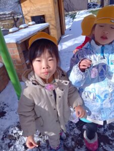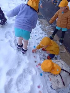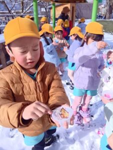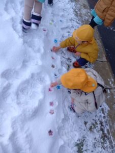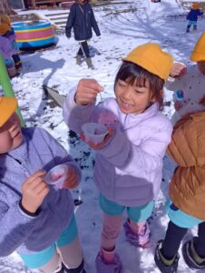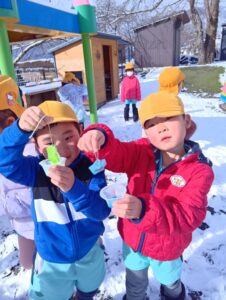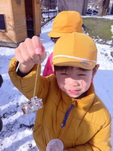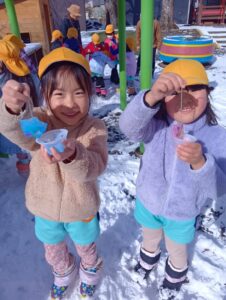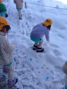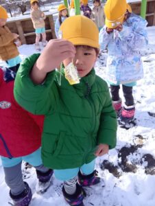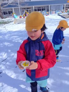 と、園庭の砂場の棚に置いて、一日たちました!!
