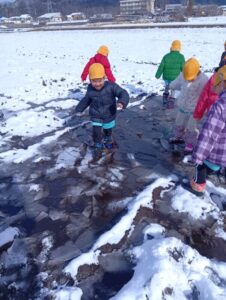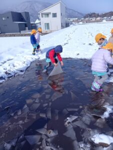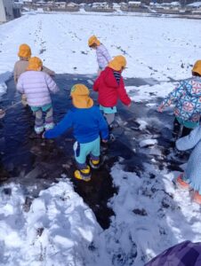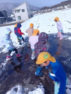 冬の凍っている田んぼに入ると、どうなってしまうか・・・