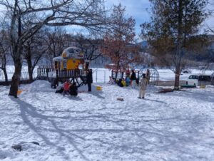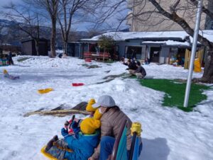 園舎裏側の雪山は、毎年、ゆり組・ひまわり組が真っ先に遊びに行きます。