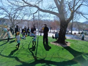 二回目の参観日は、雪もだいぶ溶けて外遊びを見ていただきました。