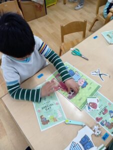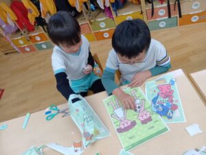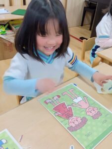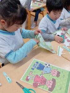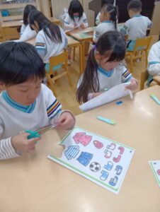 細かな絵のラインも、慎重にハサミを使って切れるようにもなりましたね!