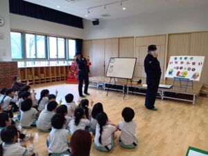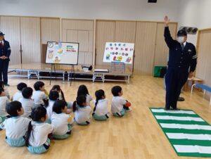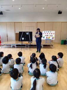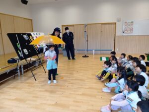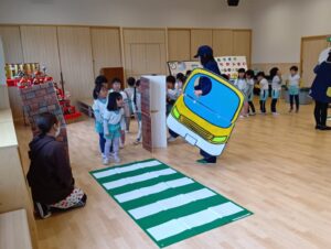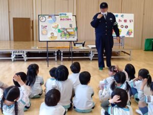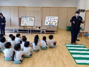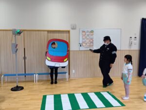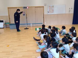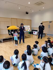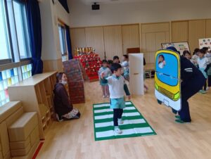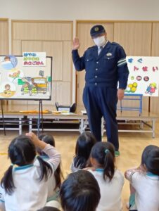 「もうすぐいちねんせい」ということで、小学校へ行くときの交通ルールなどのお話を聞きました。