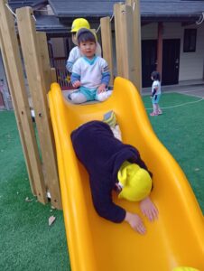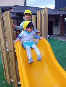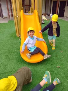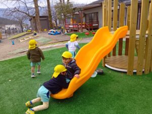 芝生の上のすべり台は、たんぽぽ組さんが楽しんでいます!