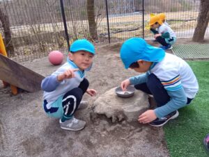 雪も全部溶けてしまって、あれも!これも!と、外での遊びもどんどん広がっていきます!!