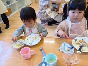 ひよこ組さん、自分でやってみたい!という思いも強くなってきて、色々な事がどんどんできるようにもなってきました。