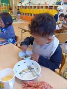 お給食の流れも、みんなが覚えてきて、スムーズに取り組むことができていくようになりました。