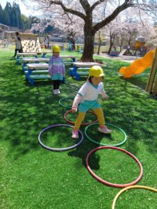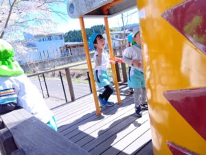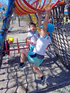 三角遊具やクルクル遊具などで遊んでまーーーす!