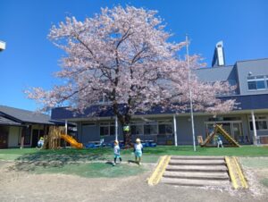 園庭の桜の花びらがチラチラチラ・・・・