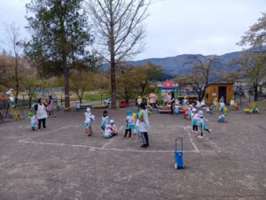 ひよこ・すみれ組さんは、お給食食べてお帰りで、