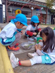 「おすなばひろば」では、今日もたくさんのごちそうを作って遊んでいます!