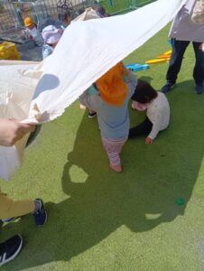 何やら、大きな白い布を、パタパタ!!パタパタ!!