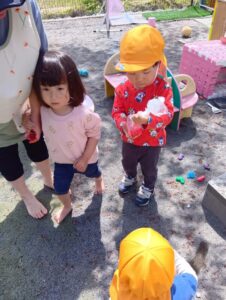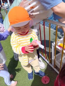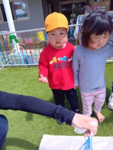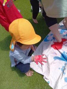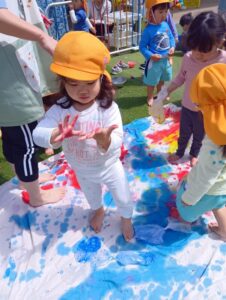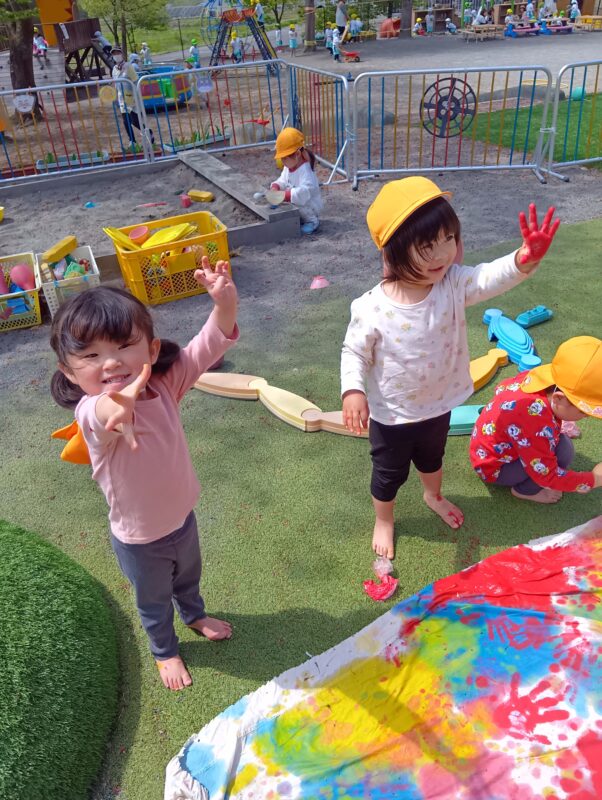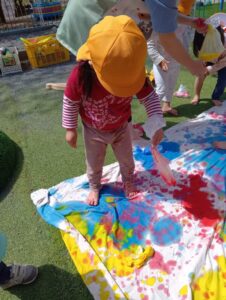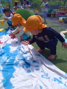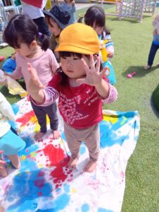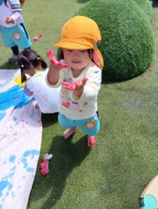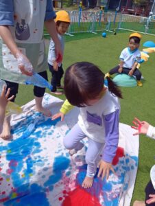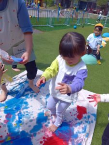 絵の具の触覚や視覚の刺激となり、感覚遊びを楽しみました!!
