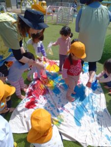 色の混ざりや変化など、子どもたちの色への親しみや感性が広がります。