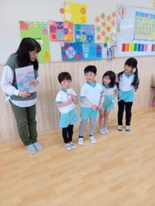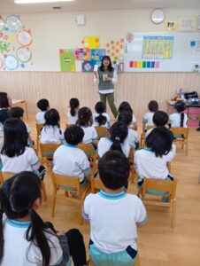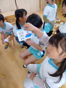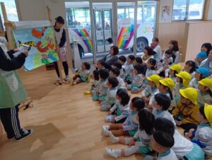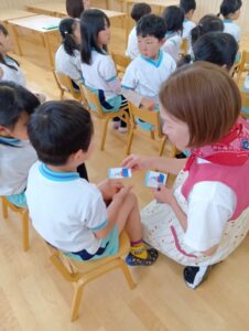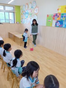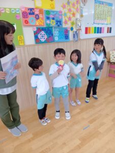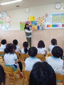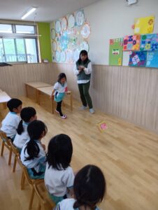 22日(水)ひまわり組さん、キャンディ先生の「キャンディタイム」(英会話)でした。