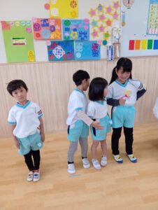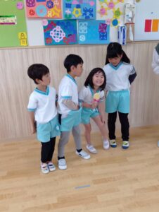 楽しく英語を学びながら、音楽に合わせて踊ったりします!!