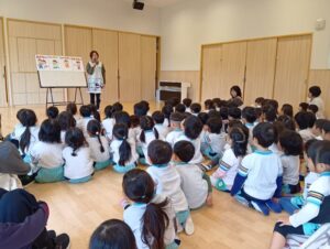 4月の1回目は、たんぽぽ・ゆり・ひまわり組で、『おはしも』の話を聞きました。