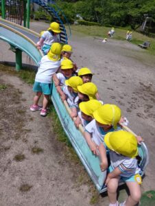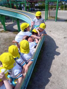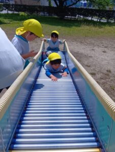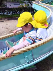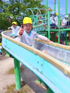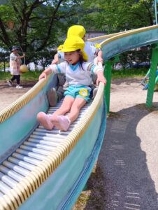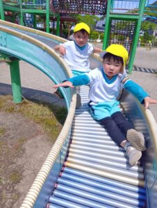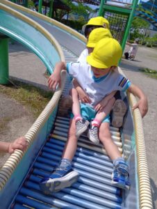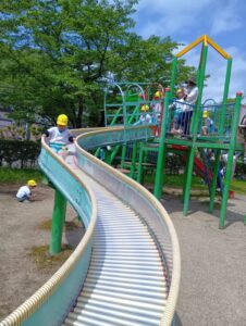 公園に着くと、大きな遊具、ローラーすべり台に、みんな大興奮!!